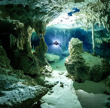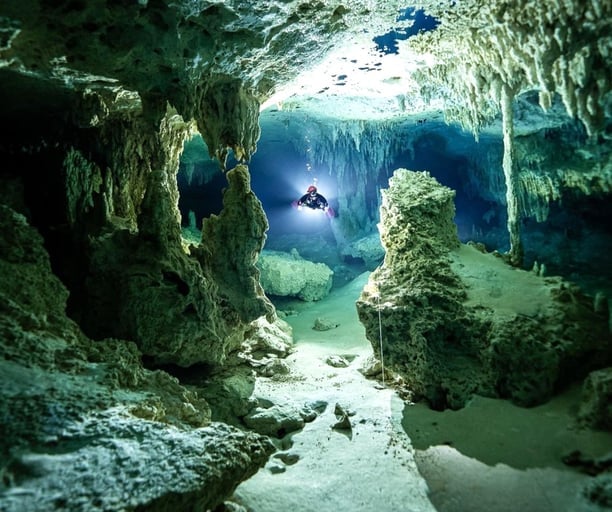 The Riviera Maya is a scuba diver’s paradise, famed for its vast underwater cave systems like Sistema Sac Actun.